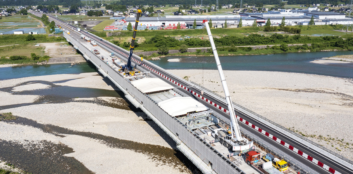 川田建設は橋梁大規模更新事業における床版取替工事で実績を増やしています。本工事ではプレキャストPC床版が採用されており、PC専業者として活躍が期待されています。
