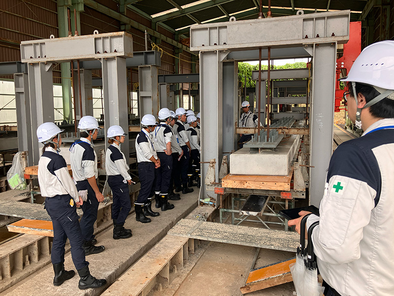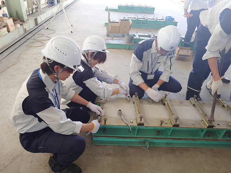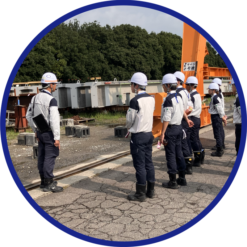 実際に建設中のPC構造物の現場を訪問します。当社を始め、多くの協力会社が「良い橋をつくる」という一つの目的に向かい、一致団結して仕事に取り組む様子を間近で体感できます。設計図面が強固な「構造物」へと変わる過程や、様々なプロフェッショナルたちの高度な技術と熱気をぜひ肌で感じてみてください。