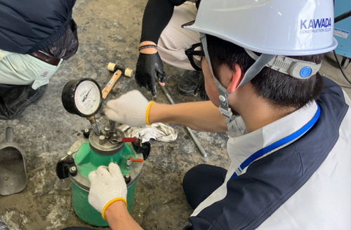 施工管理業務として出来形計測や測量など、現場での技術も体感いただけます。
