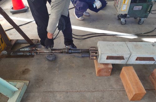 PC梁製作(圧縮強度試験/型枠脱型/緊張作業)/