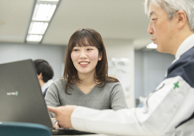 今まで現場に配属された経験はありませんが、現在担当している業務の先には現場があり、一人ひとりの社員がいます。特に、現場での経験が浅い若手社員は業務に時間がかかりがちになるので、少しでもアシストできるよう、自分自身も成長を続けたいと思っています。10年後の現場はどのように変化しているのか、未知なところもありますが、社員一人ひとりがより働きやすく、より活躍できるように今後も力を注いでいきます。