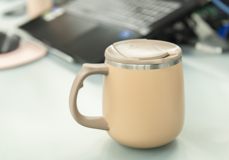 こだわりのアイテムは、名古屋支店時代に買ったマグカップです。デスクワークが中心なので、仕事で一息つくときに、このマグカップは欠かせません。コーヒー豆の種類などには詳しくありませんが、出張先や旅行先で、その土地土地のドリップコーヒーを購入したり、自宅ではたまに豆を挽いて飲んだりもします。好みは、コクのある深煎りコーヒーですね。お気に入りのマグカップで飲むと心身ともに落ち着くので、仕事にメリハリもつきます。