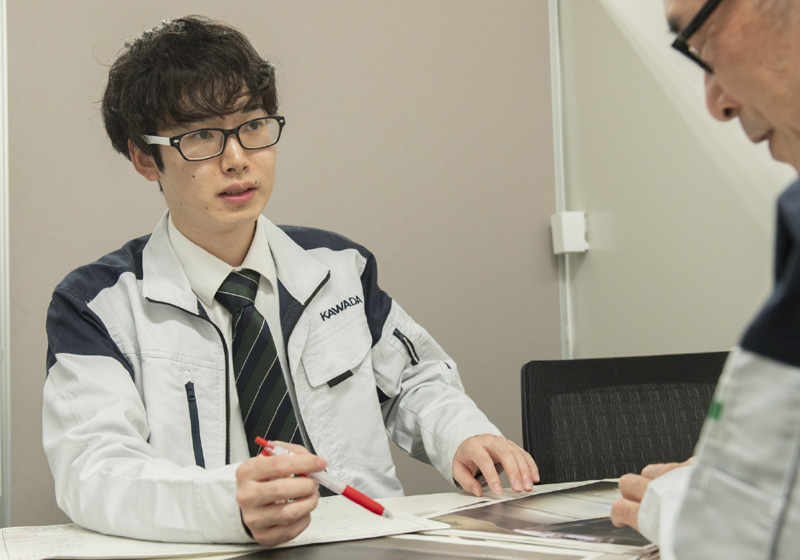 「川田建設の1DAYインターンに参加してみないか?」大学1年次に大学の教授から言われた言葉が、今につながるきっかけでした。建築には興味がありましたが、その時までは土木や橋梁に関心を持つきっかけはなかったので、川田建設のインターンに参加して、初めてその規模の大きさや存在感を目の当たりに。在籍していた環境建設工学科は1年次の終わりに建築コースか、土木コースかを選択するのですが、その体験から土木コースを選び、2年次には川田建設の1WEEKインターンにも参加しました。首都高速の補修現場の見学や、耐震設計の業務を体験させてもらい、高度な実務レベルに驚くとともに面白さとやりがいを実感しました。そして、雰囲気の良さも。川田建設の方々は、学生だった私と常に目線を合わせ、対等に接してくれました。土木コンサルタント会社などのインターンに参加しましたが、川田建設を超える雰囲気の良さと仕事の面白さは感じられず、就職活動は川田建設のみに絞りました。 インターンの経験から大学で学べるレベルと実際の仕事のレベルには大きな差があり、力を発揮できるか不安もありましたが、その不安を埋める機会になったのが、研修制度のKAWAKENアカデミーです。振り返ると、現場でも通用する考え抜かれたカリキュラムが組まれ、密度の濃い授業や演習によってレベルを高めることができたと感じています。